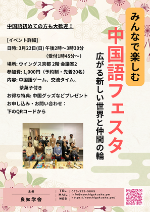 2026年3月22日(日) 14:00〜京都で開催する中国語のワクワクするイベント告知です。