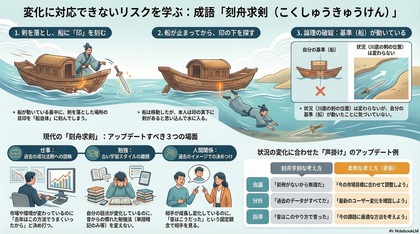 「状況が動いてるのに、やり方だけ止まってる」—現代人に刺さる成語です。