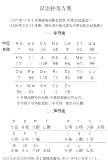 参考:当時の「漢語拼音方案」資料イメージ(雰囲気がつかめます)